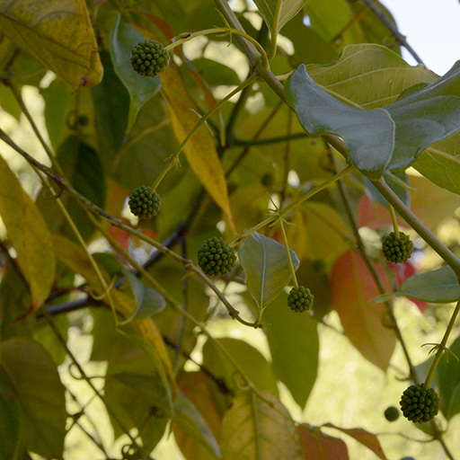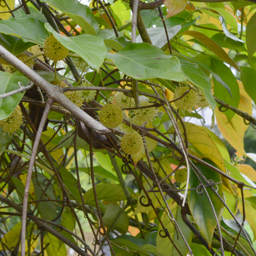 生薬名はチョウトウコウで、かぎ状の棘(とげ)の部分が薬用です。属名は、ラテン語の鉤(uncus)に由来しています。レゾベラトロールというポリフェノールが含まれており、健康維持や疾患の予防に役立ちます。
