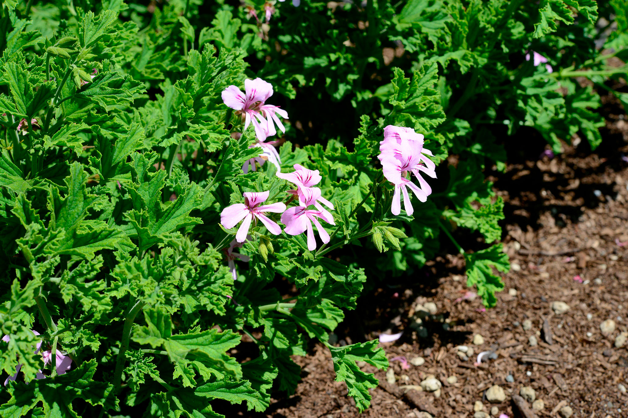 南アフリカ原産で、茎葉にバラのような芳香をもつ。水蒸気蒸留して得られる精油は「ゼラニウム油」と呼ばれ、香料などとして利用される