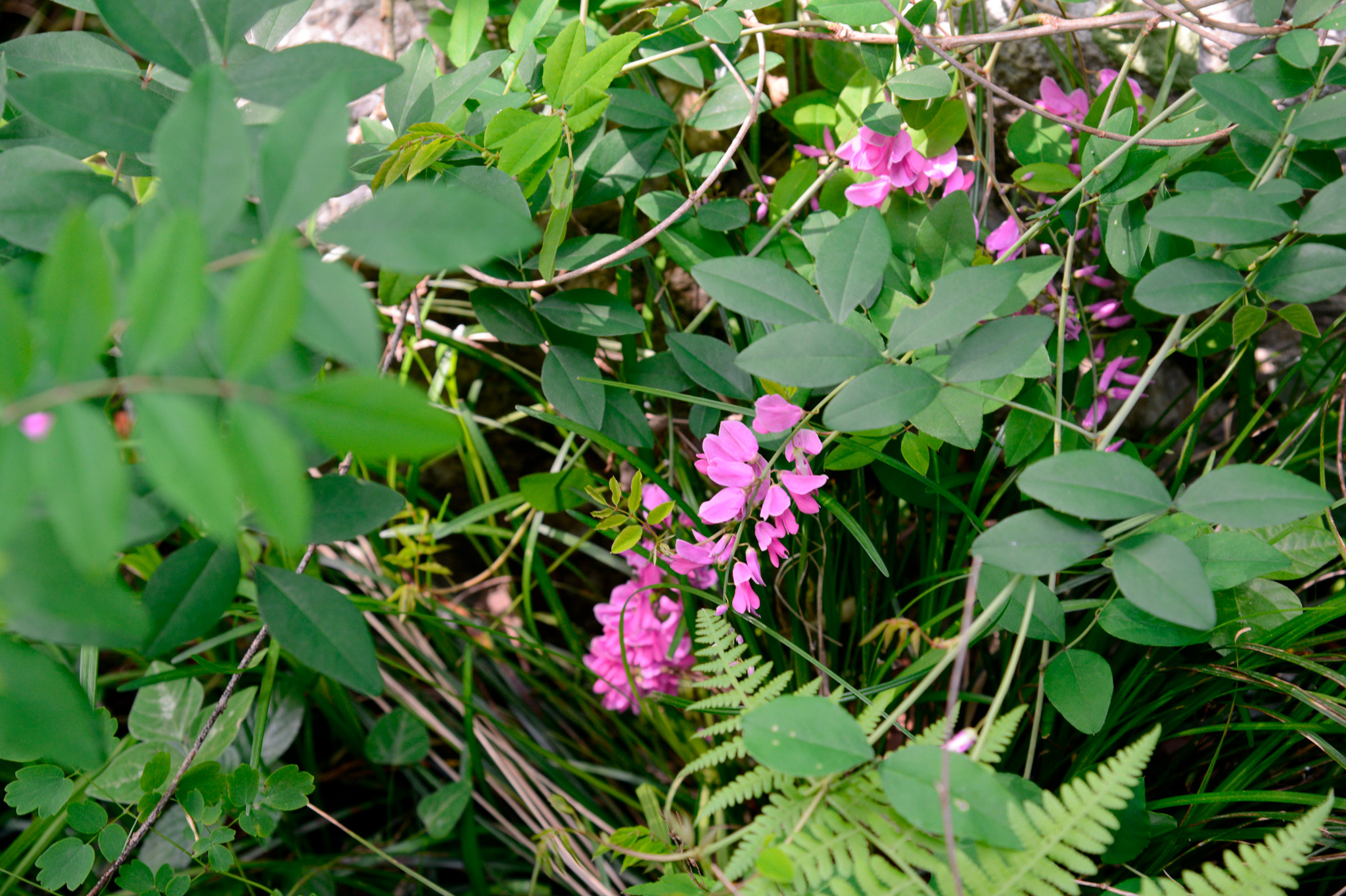 草丈40~60cm。マメ科の植物のひとつです。花期は5-6月頃で、長さ1.5cmくらいの紅紫色の花を咲かせます。